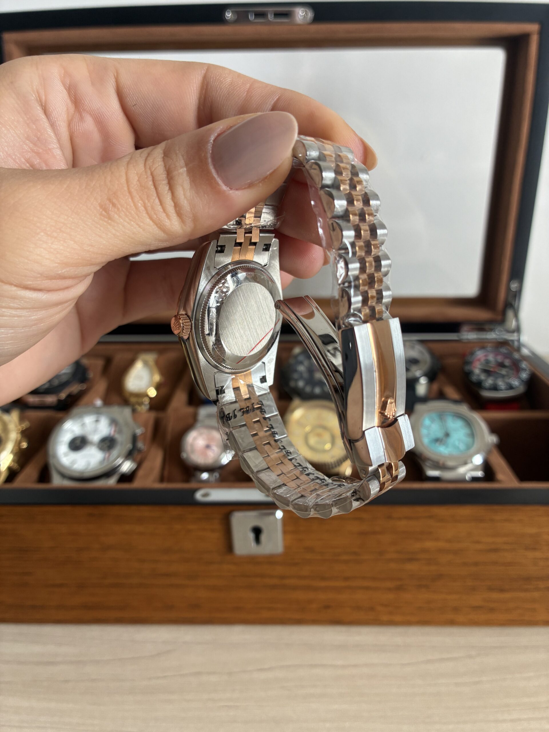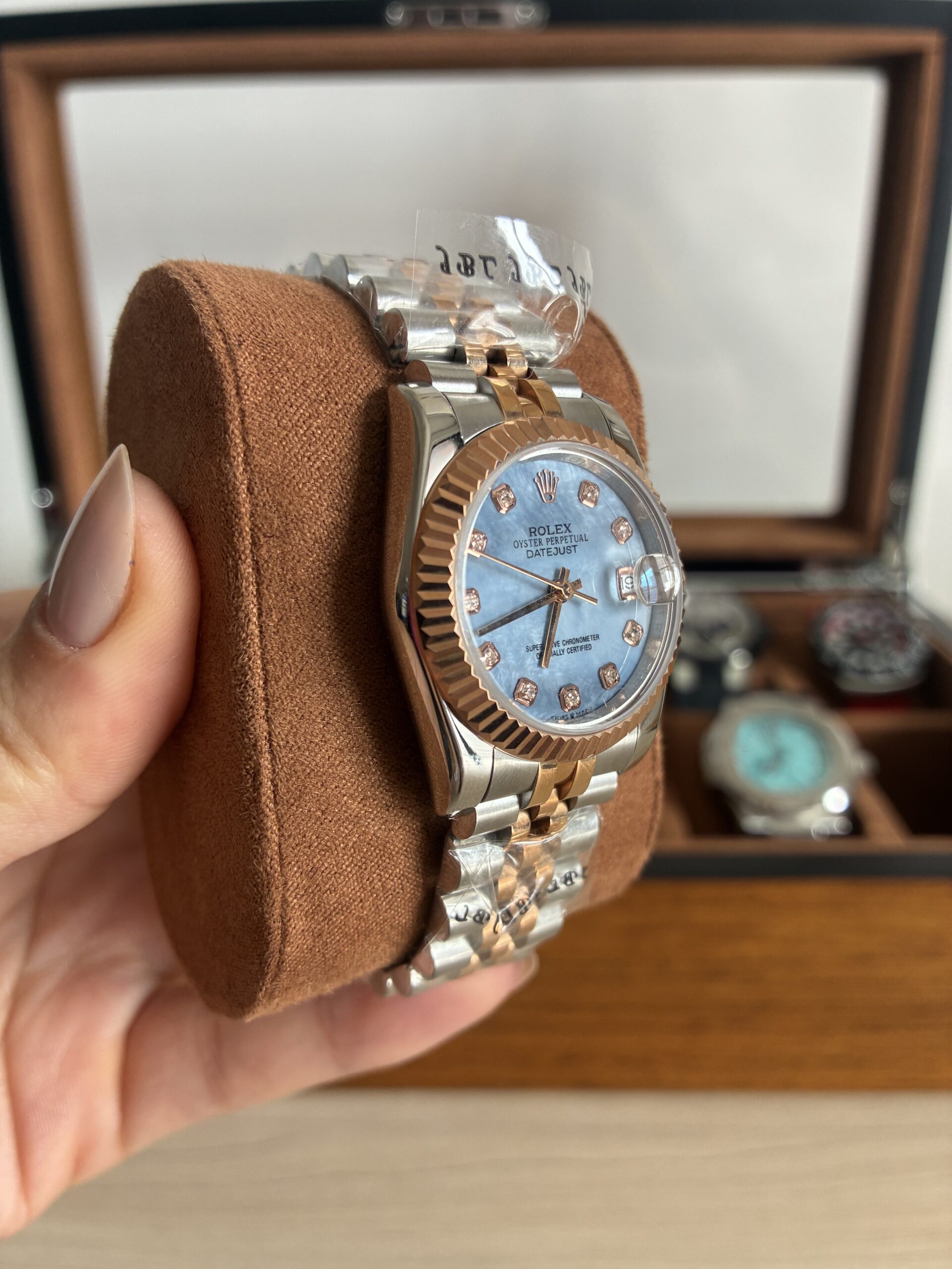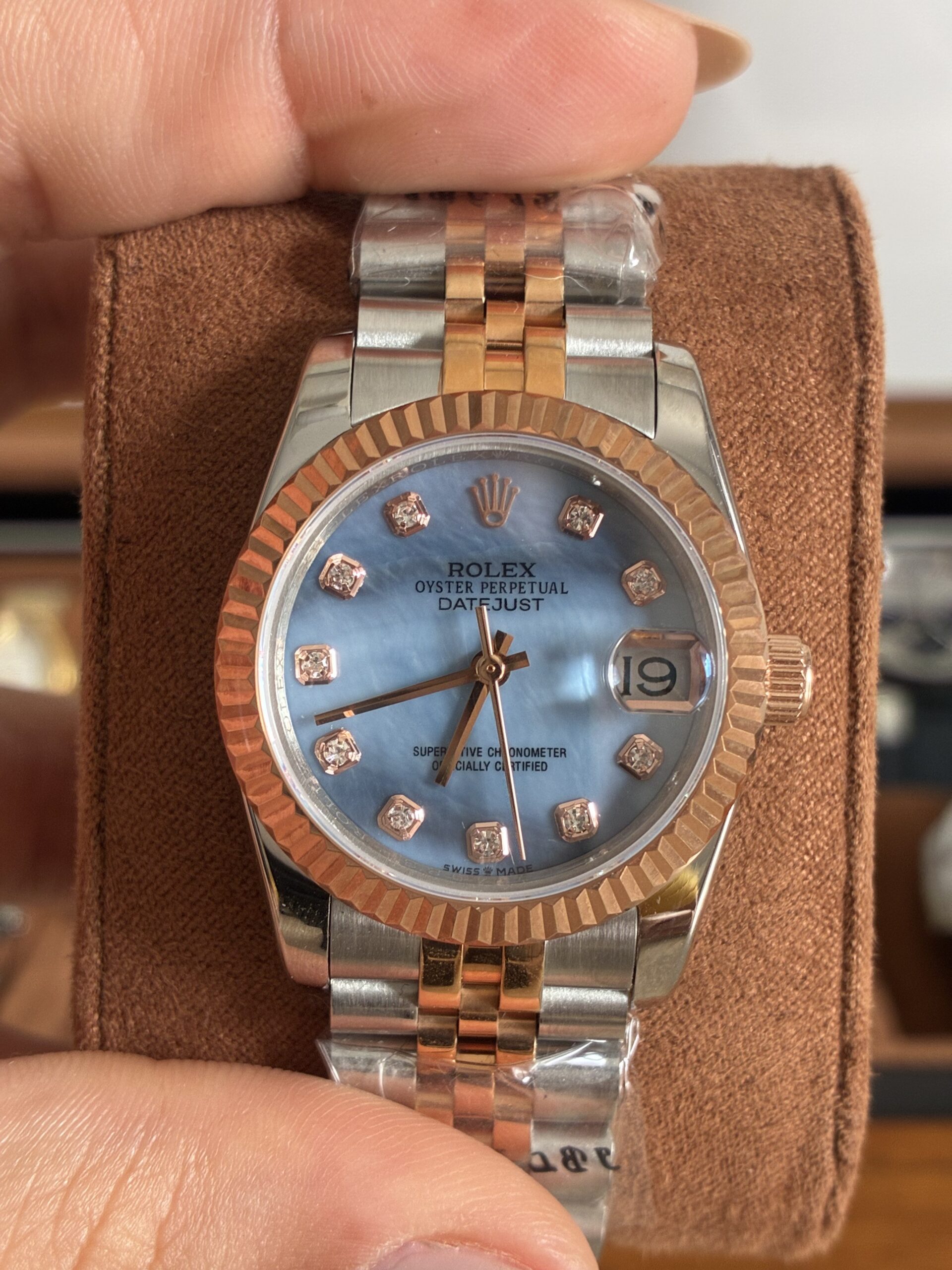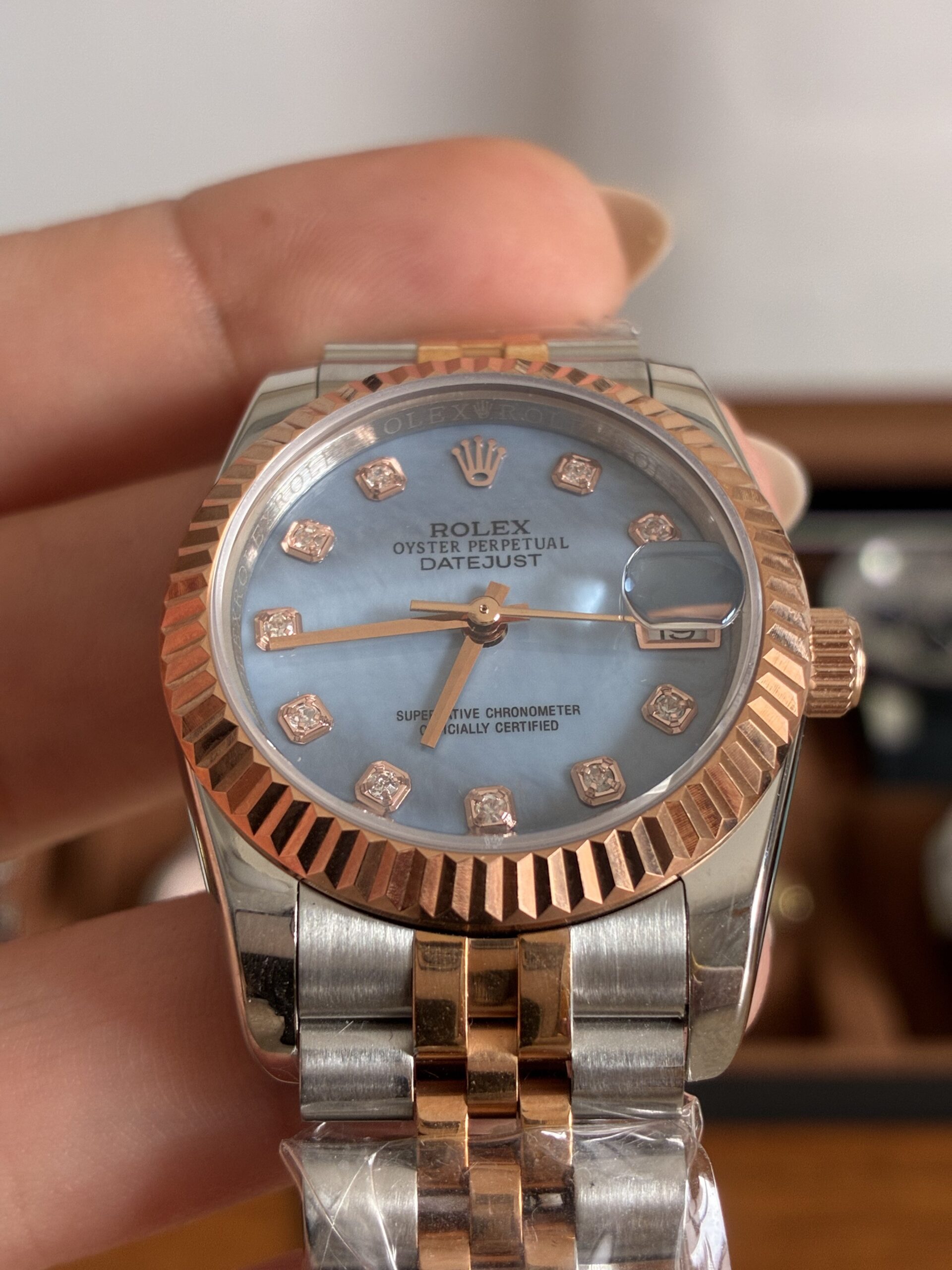 O Relógio Feminino Feminino 31mm Automático Vidro Safira conta com movimento automático com máquina Base Eta 2840, caixa em aço inoxidável 904l, vidro de cristal safira resistente a arranhões.