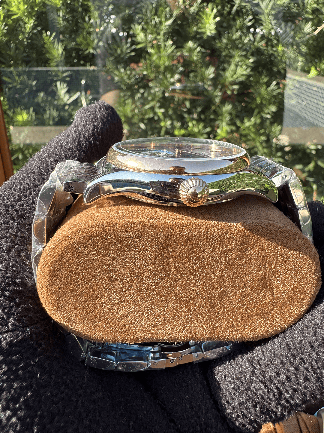 O relógio masculino 43mm automático vidro safira conta com movimento automático equipado com máquina base ETA 2840, garantindo precisão, durabilidade e funcionamento confiável. O vidro de cristal safira oferece maior resistência a riscos, enquanto a caixa em aço inoxidável 904L assegura robustez e acabamento superior.
