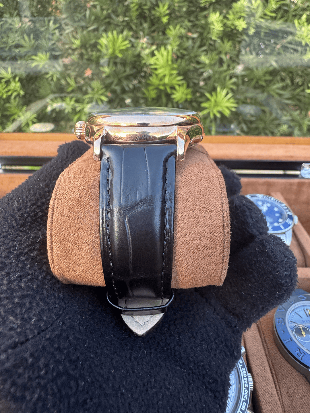 Equipado com movimento automático e máquina base ETA 2840, o modelo entrega precisão mecânica e funcionamento estável. O vidro em cristal safira garante alta proteção contra riscos, enquanto a pulseira em couro proporciona conforto e elegância no uso diário.
