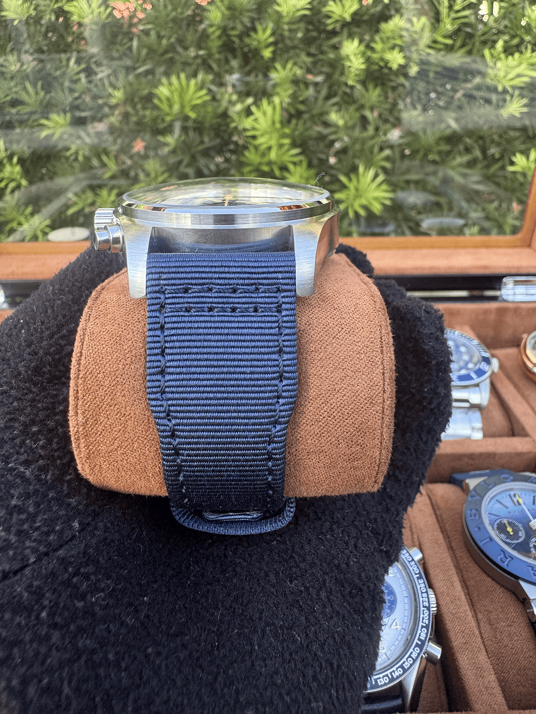 Equipado com movimento quartz de alta confiabilidade, o modelo possui cronógrafo funcional, datador e ponteiro de segundos, entregando praticidade no uso diário. O vidro em cristal safira oferece proteção contra riscos, enquanto a pulseira em nylon reforça o estilo esportivo e militar característico da linha.