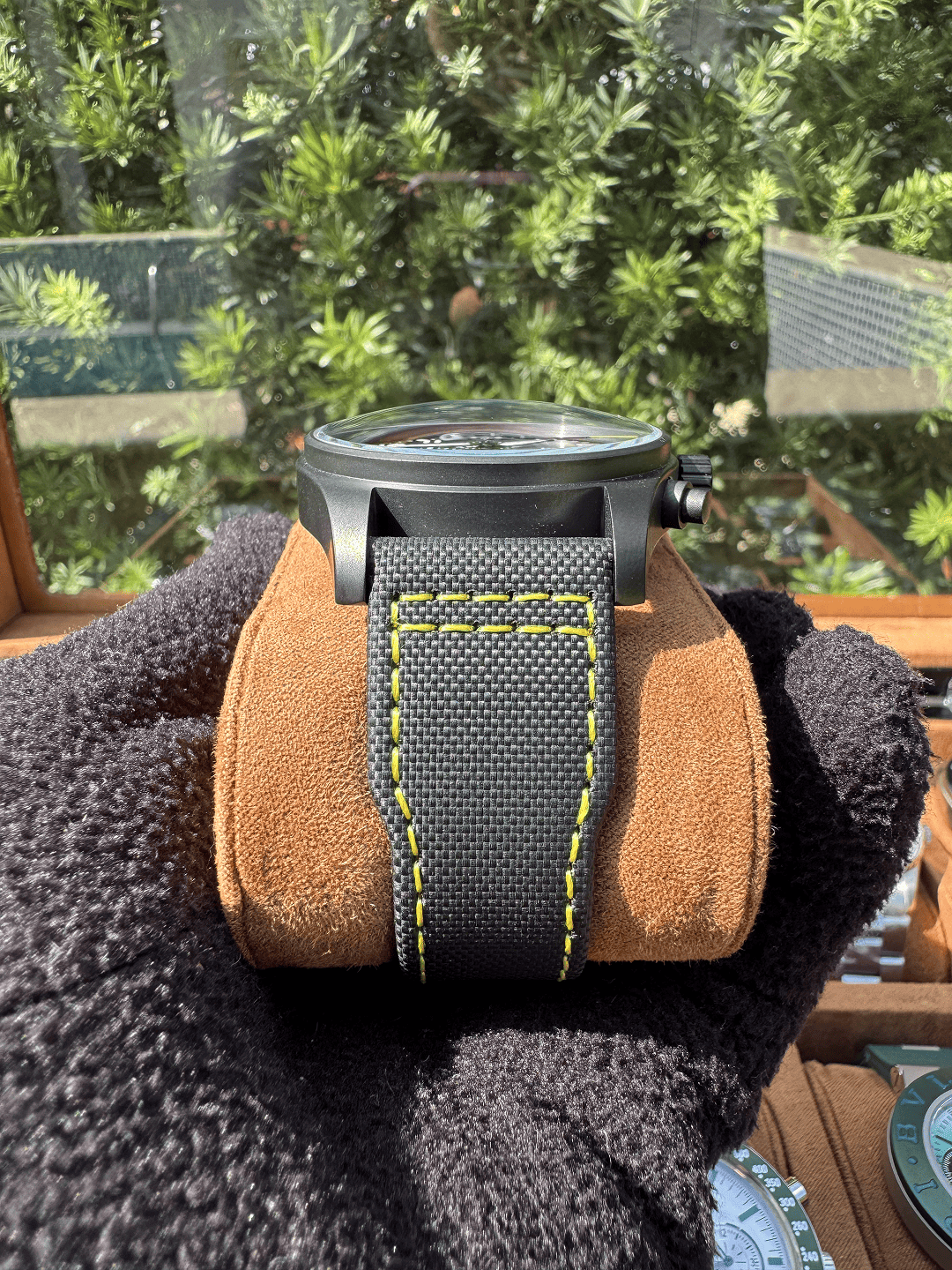 Equipado com movimento quartzo de alta precisão e máquina RONDA G20, o relógio masculino cronógrafo 44mm quartzo cerâmica vidro safira conta com cronógrafo funcional, datador e ponteiro de segundos, garantindo praticidade no uso diário. O vidro de cristal safira oferece resistência superior contra riscos, tornando o modelo ideal para uso intenso e revenda qualificada.