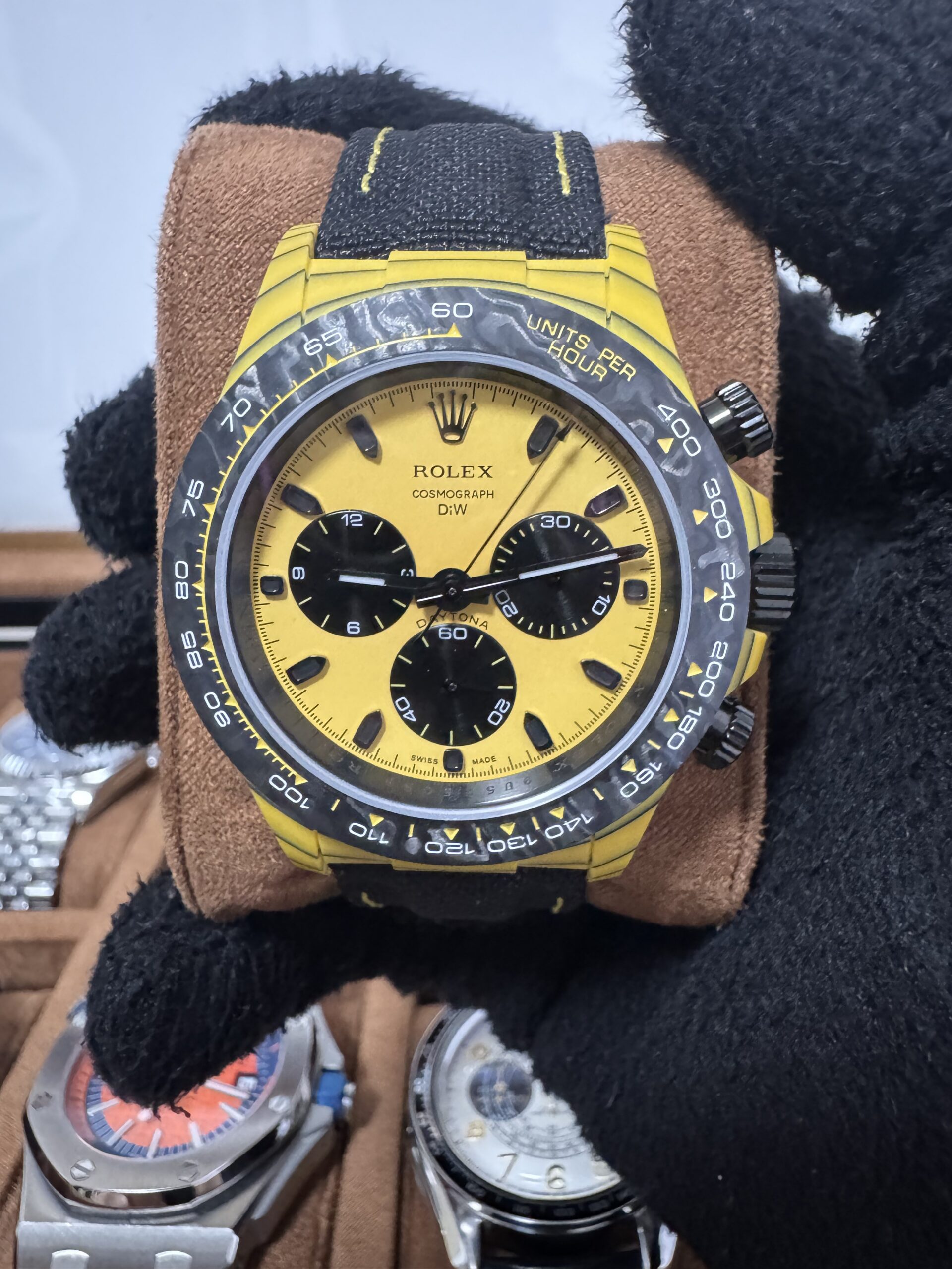 O relógio masculino cronógrafo automático 40mm carbono vidro safira é um modelo de alto desempenho, desenvolvido para quem busca exclusividade, robustez e acabamento superior. Seu design esportivo em fibra de quartz com carbono entrega leveza, resistência e forte apelo visual no segmento premium.