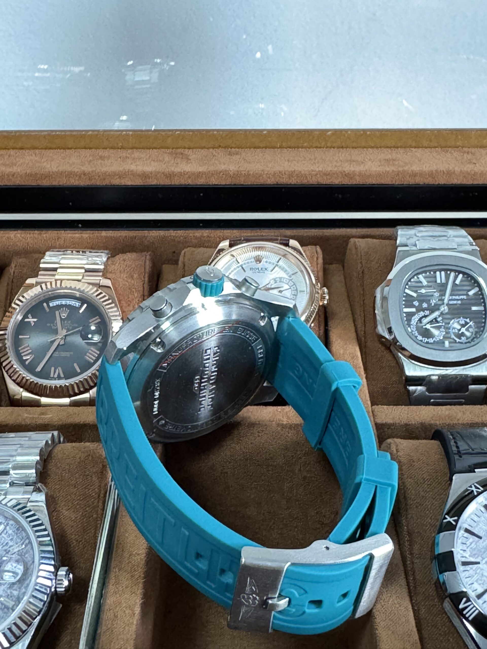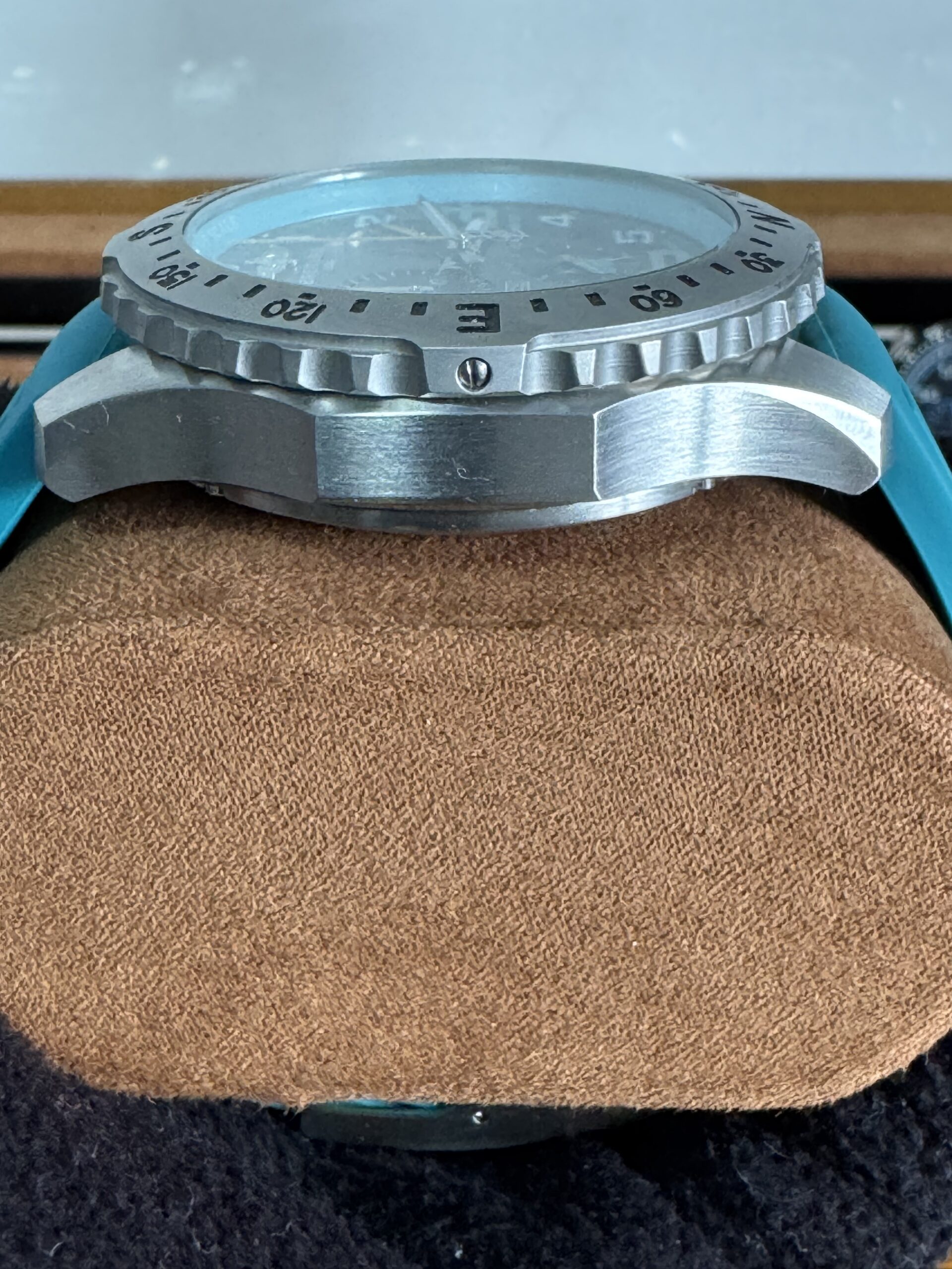 O Relógio Masculino Endurece Pro 44mm Quartzo Vidro Safira conta com movimento quartz com máquina Ronda G20, pulseira de borracha, vidro de cristal safira resistente a arranhões.
