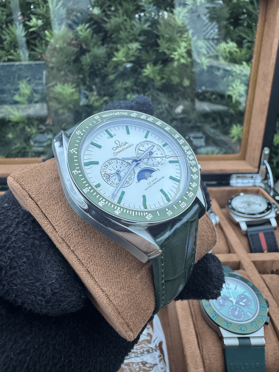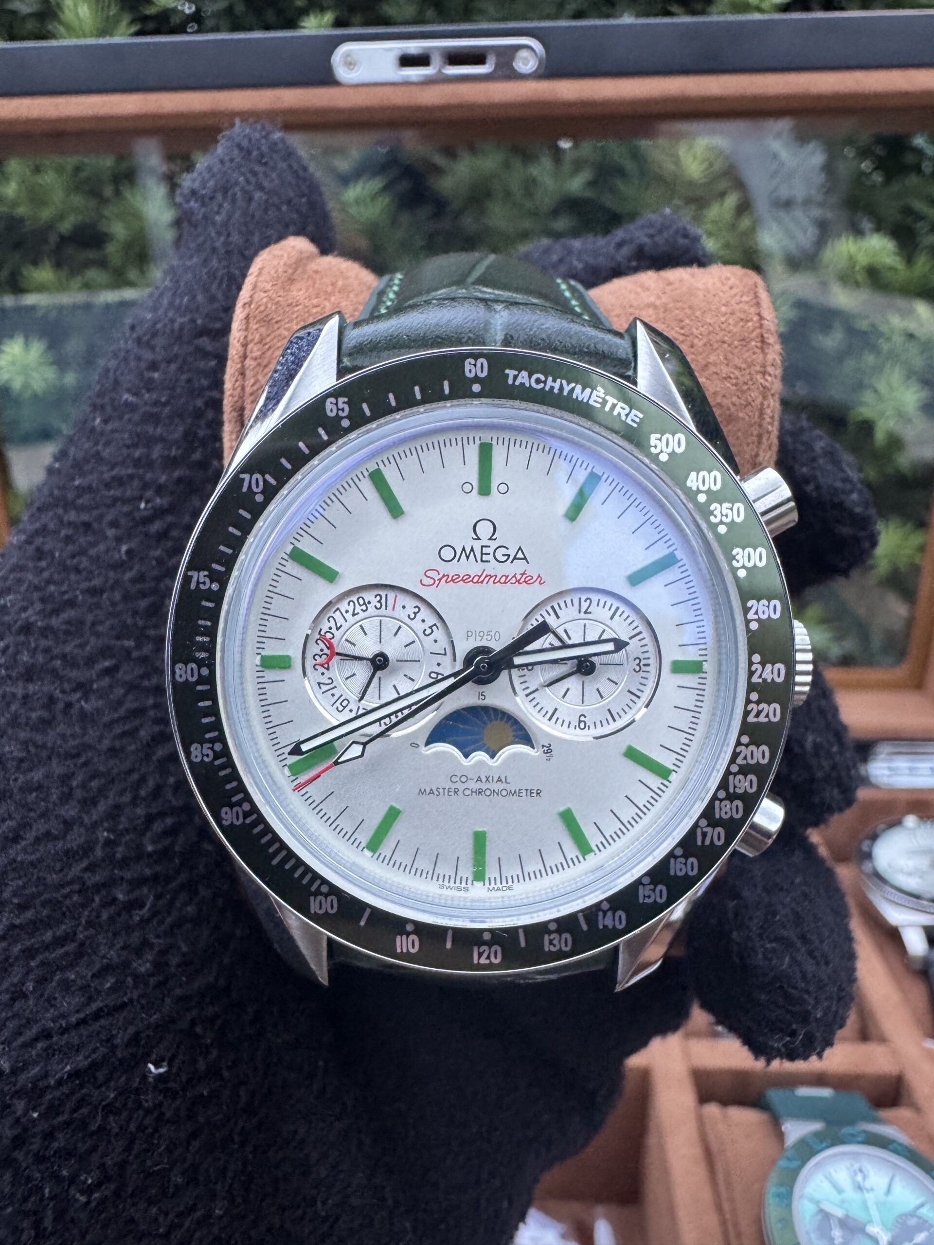 O relógio masculino fases da lua 44mm automático vidro safira conta com caixa em aço inoxidável 904L, bezel em cerâmica e pulseira em couro, unindo conforto, resistência e acabamento refinado. O vidro de cristal safira garante proteção contra riscos e maior durabilidade no uso diário.