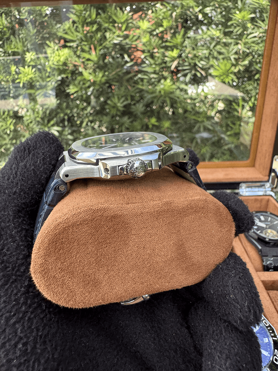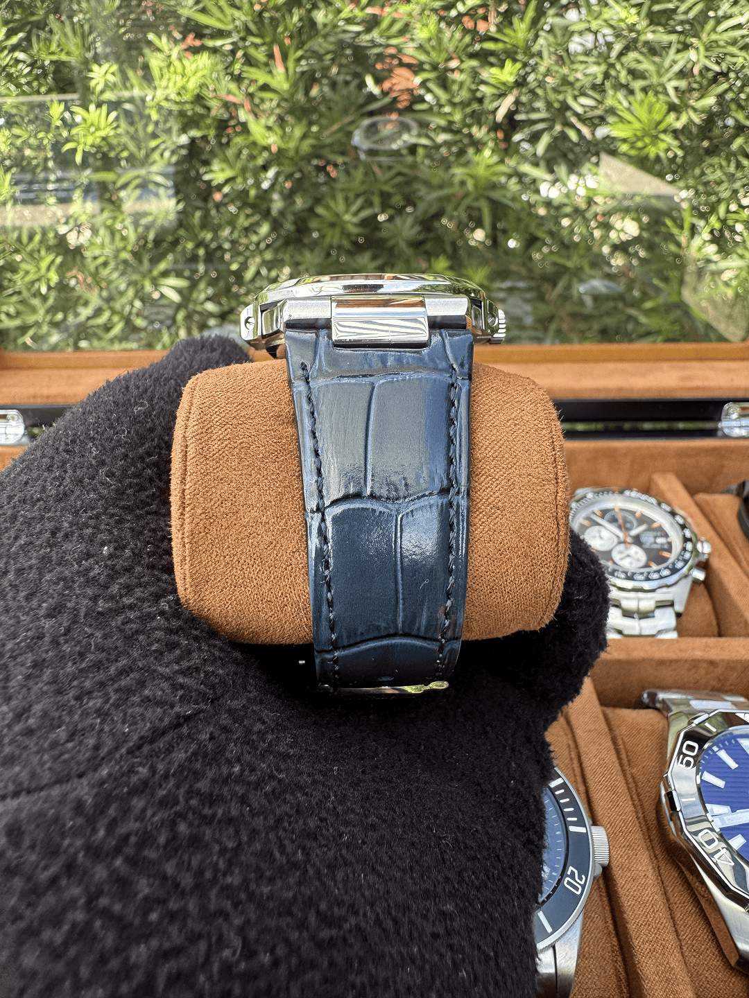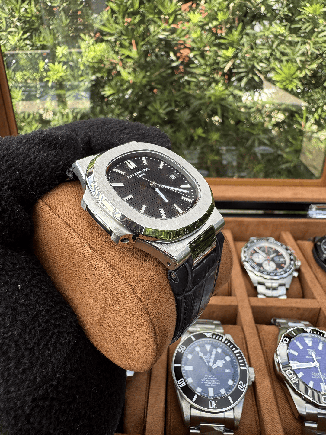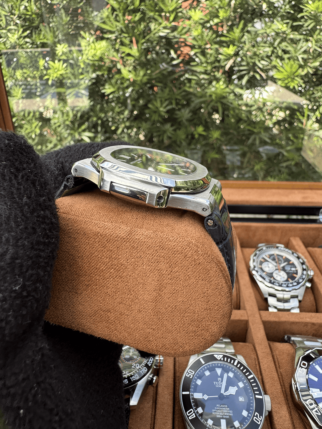 A caixa em aço inoxidável 904L combinada ao bezel em cerâmica entrega um visual robusto e elegante, enquanto o vidro de cristal safira garante maior resistência a riscos.
