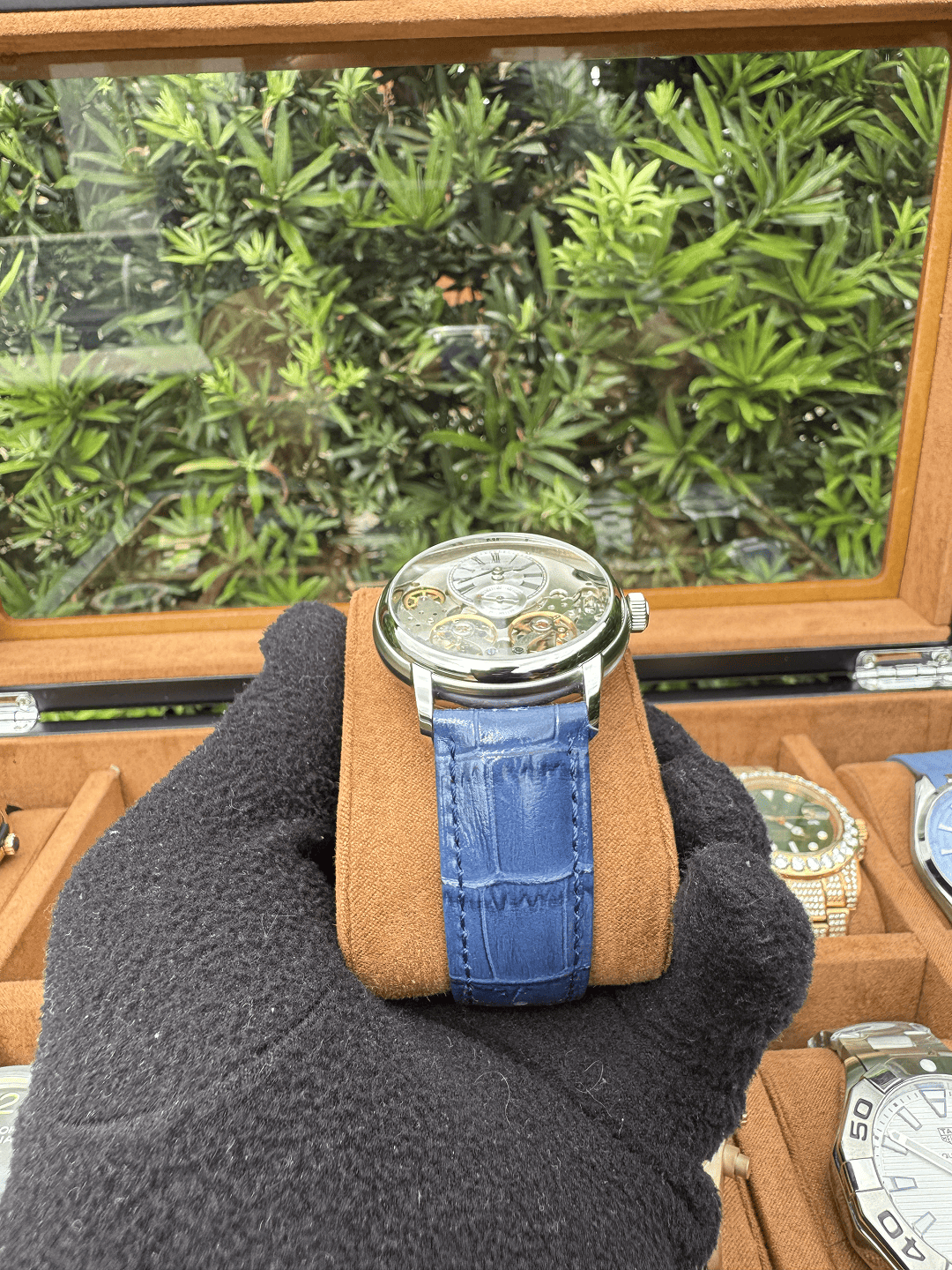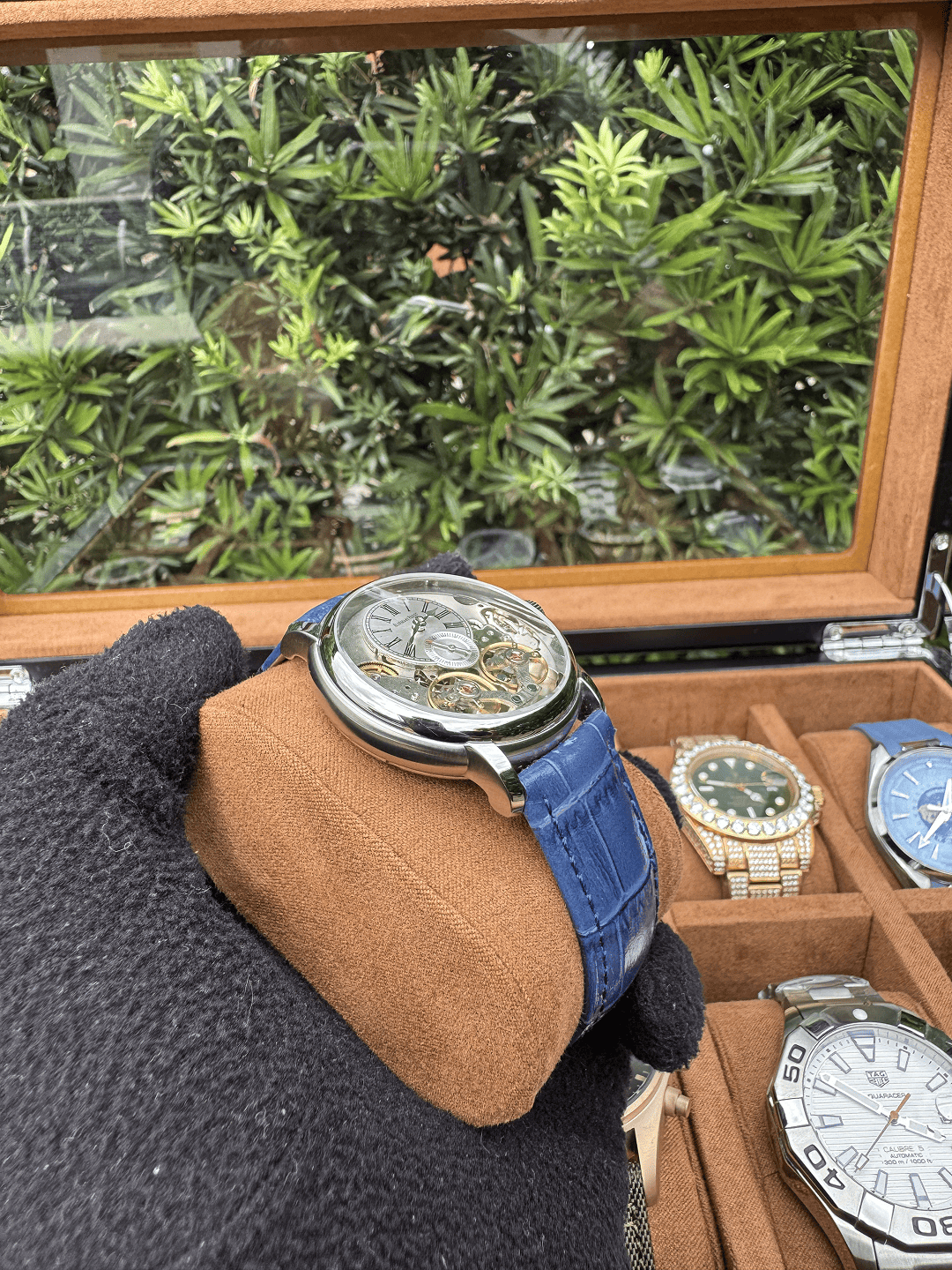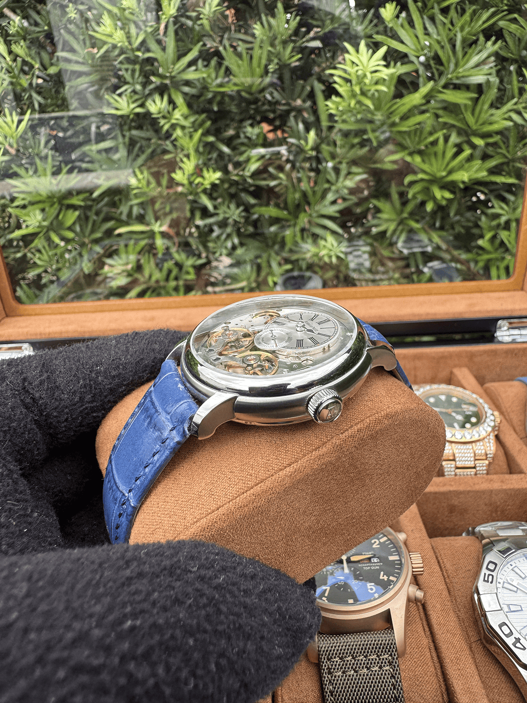 O Relógio Masculino Tourbillon 42mm oferece um visual imponente, acabamento refinado e desempenho premium AAA+. Seu design marcante combina caixa em aço inoxidável 904L, pulseira em couro de alta qualidade e vidro de cristal safira, entregando durabilidade e elegância.