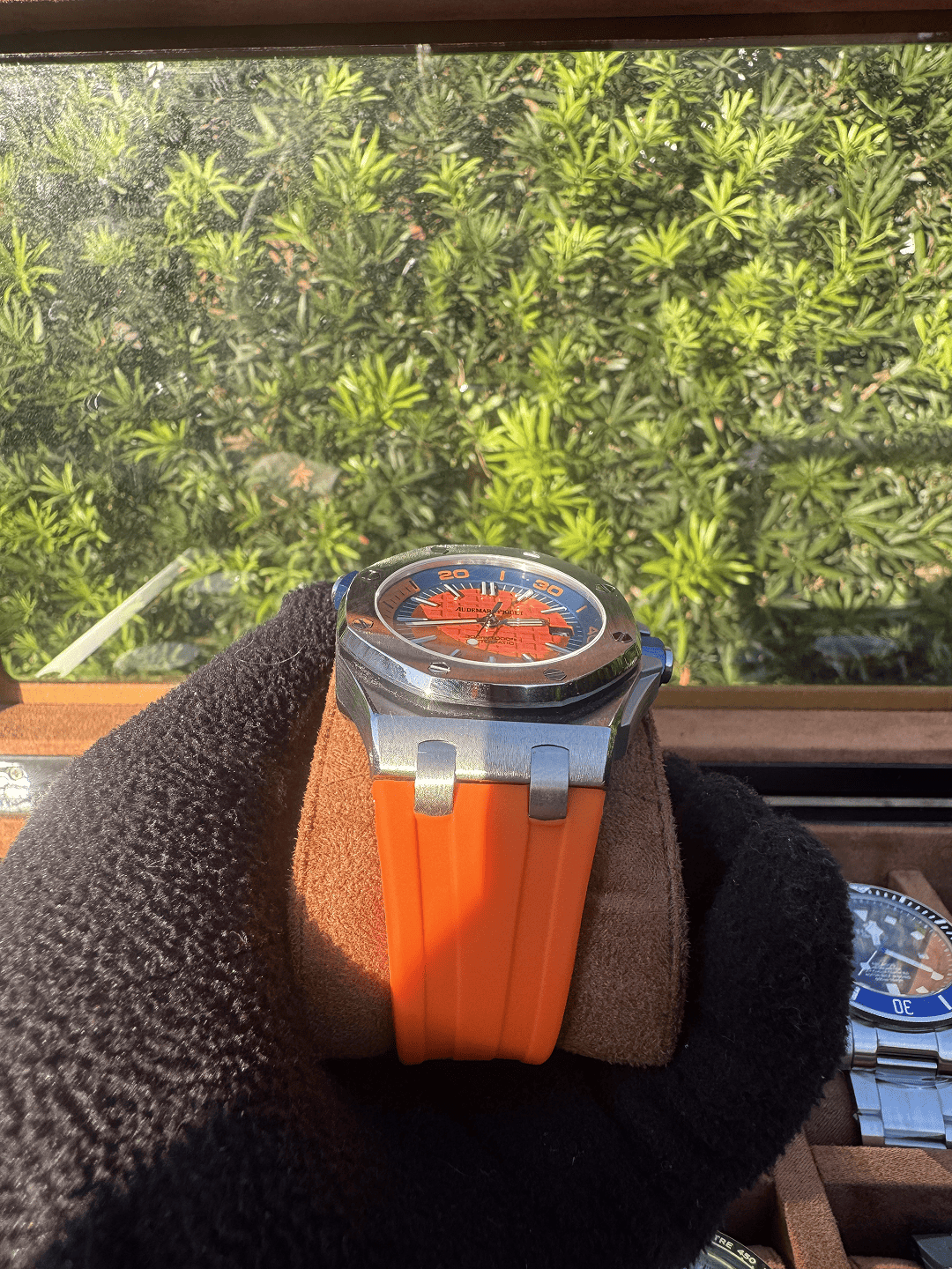 O Relógio Masculino Offshore Diver 42mm Automático Cerâmica Vidro Safira é uma peça Premium AAA+ desenvolvida para quem busca um modelo robusto, moderno e com forte presença visual. Construído em aço inoxidável 904L com pulseira de silicone, este relógio entrega conforto e resistência, sendo ideal para revendedores que trabalham com produtos de alta valorização.