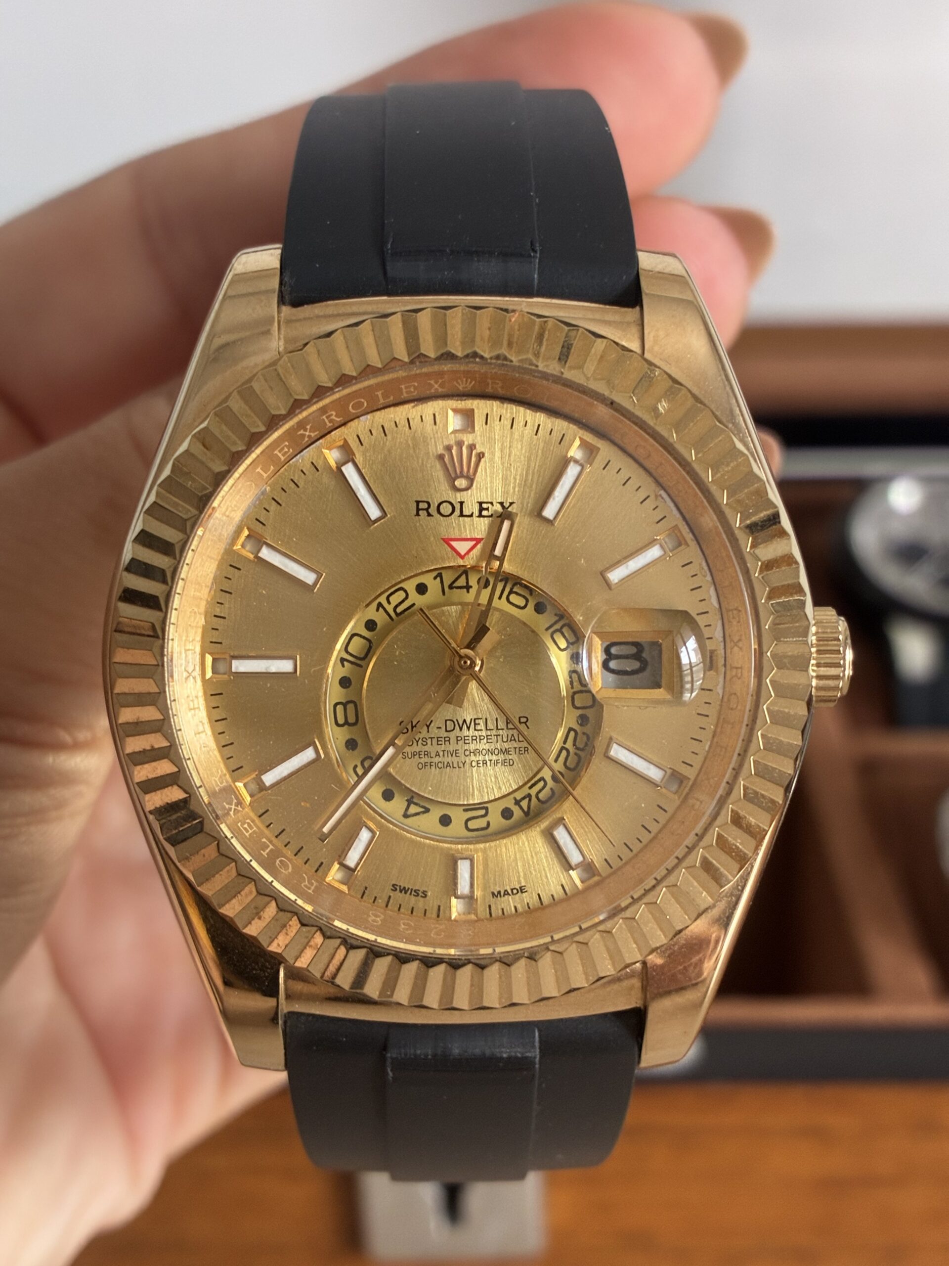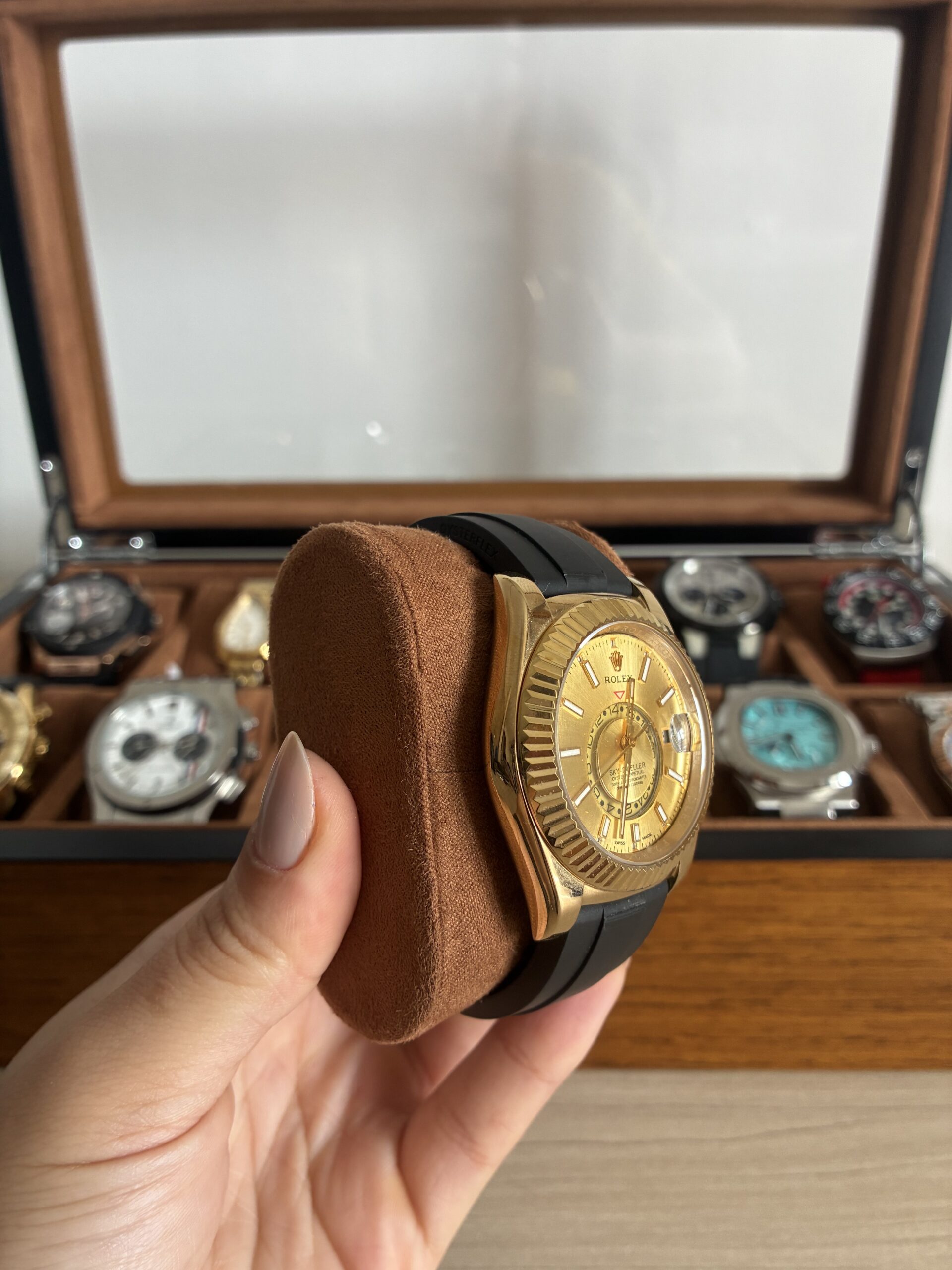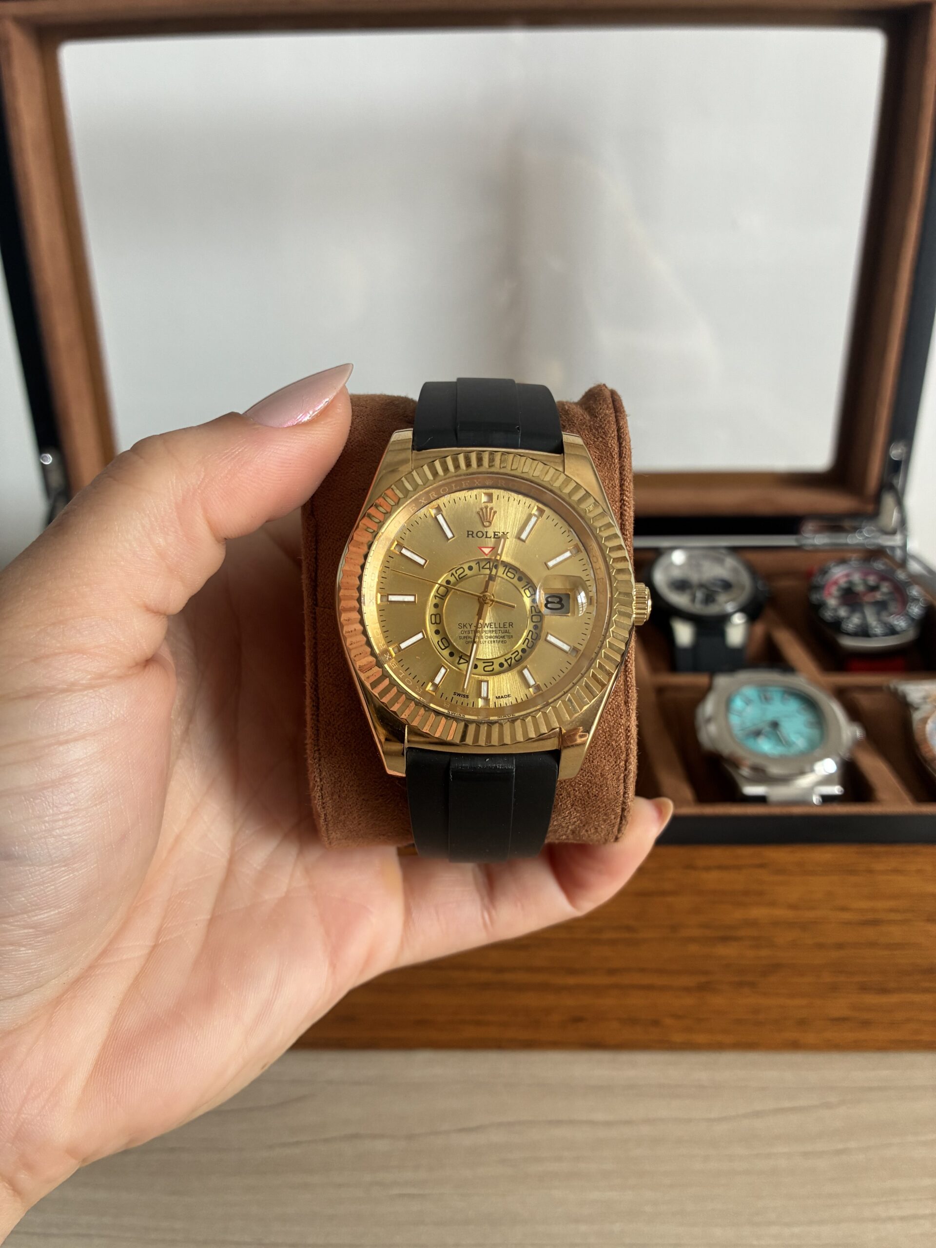 O Relógio Masculino Sky-Dweller 42mm Automático Vidro Safira é indicado para revenda no atacado e varejo, com excelente giro e boa margem de lucro. Pronta entrega disponível. Produto com acabamento Premium AAA+.