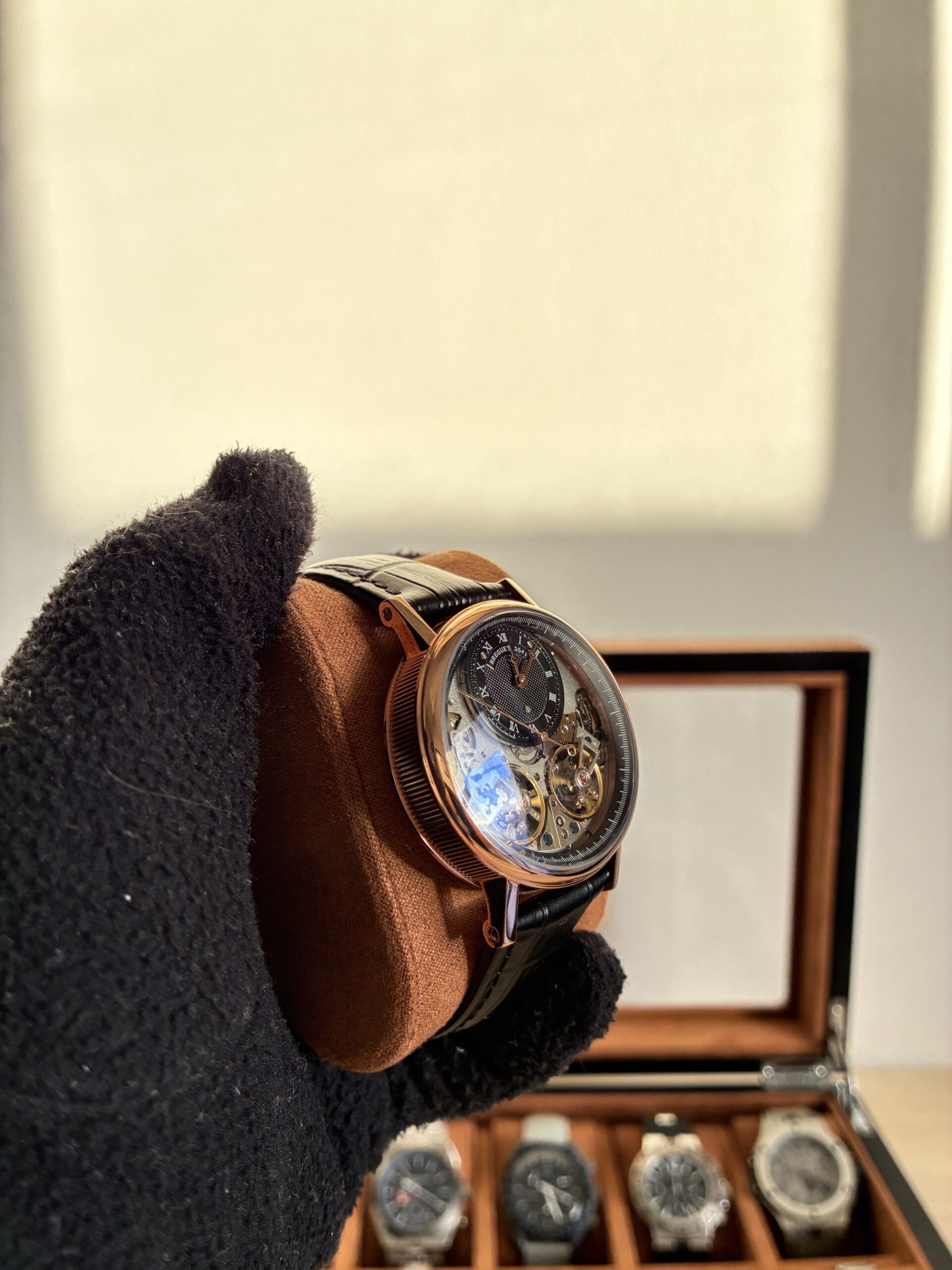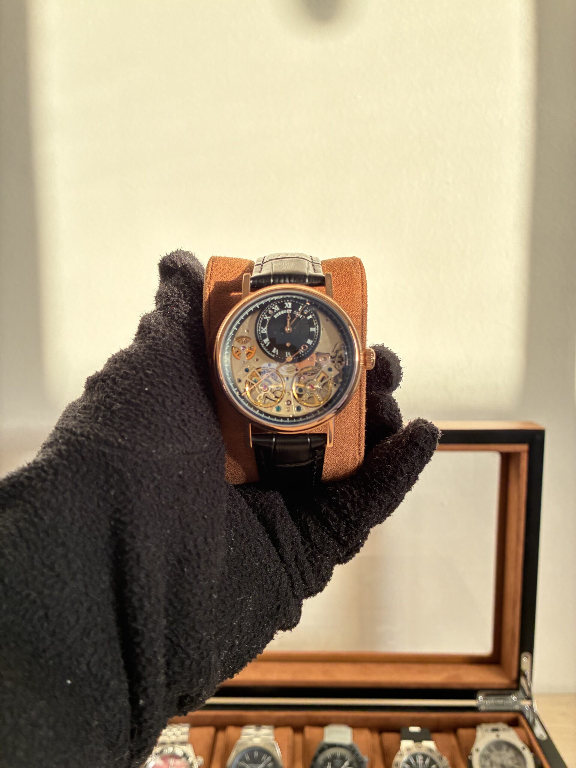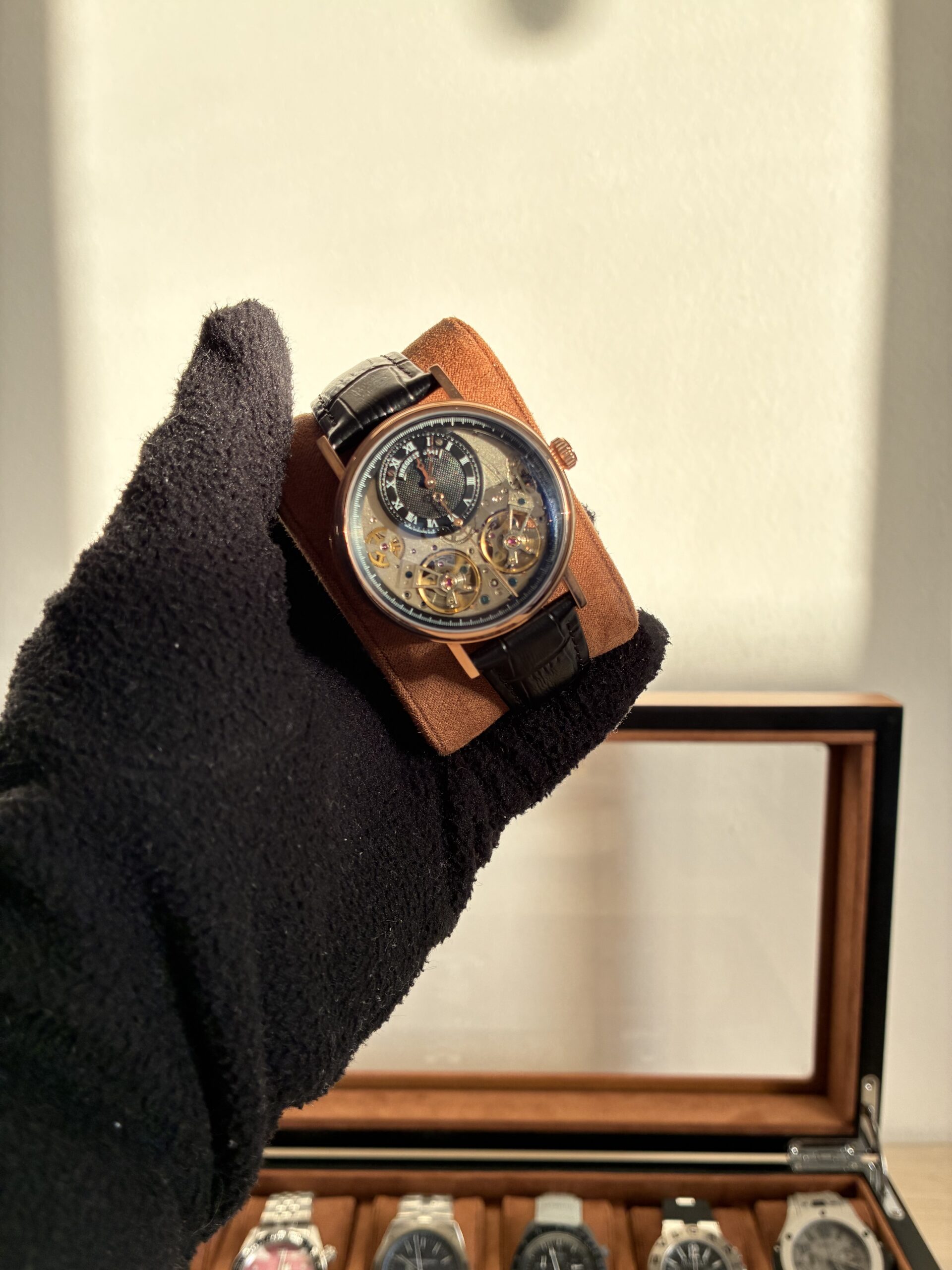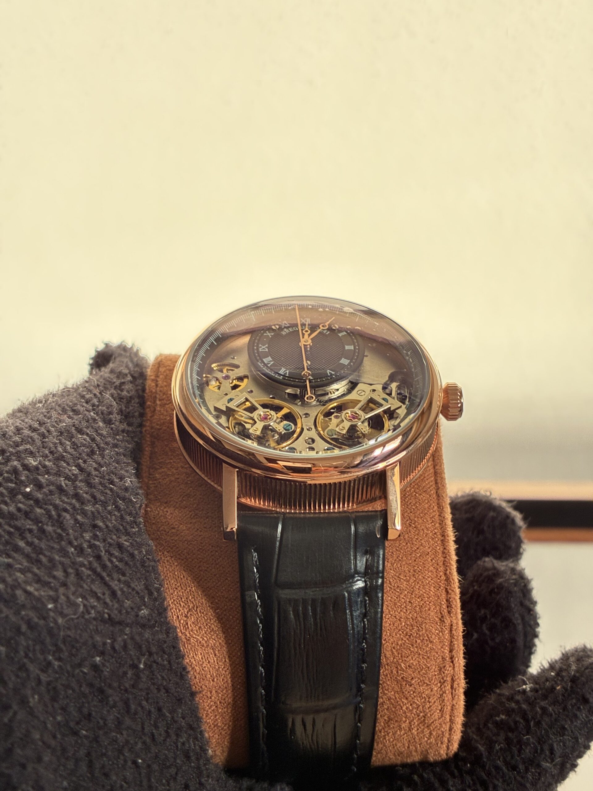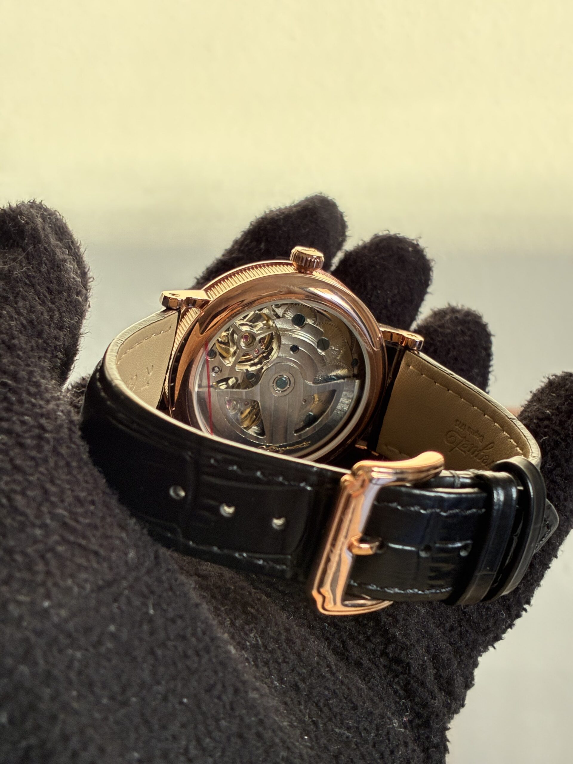 O Relógio Unissex Tradition 40mm Automático Vidro Safira conta com movimento automático com máquina Base Eta 2840, caixa em aço inoxidável 904l, pulseira de couro, vidro de cristal safira resistente a arranhões.